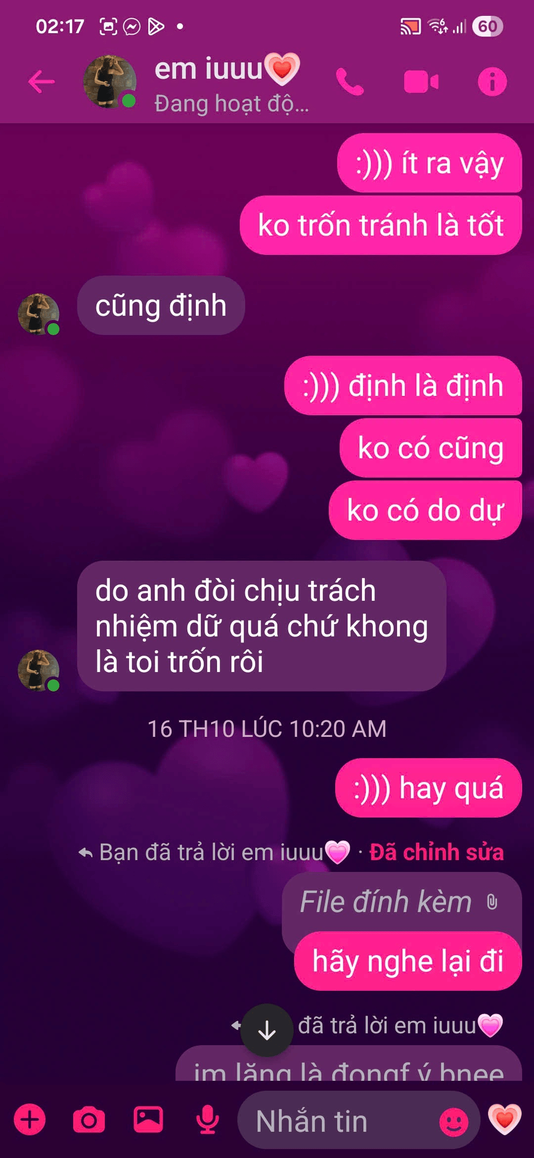 - Ngay cả khi em dùng những lời đau lòng nhất để đẩy anh ra, anh vẫn chọn cách ở lại.